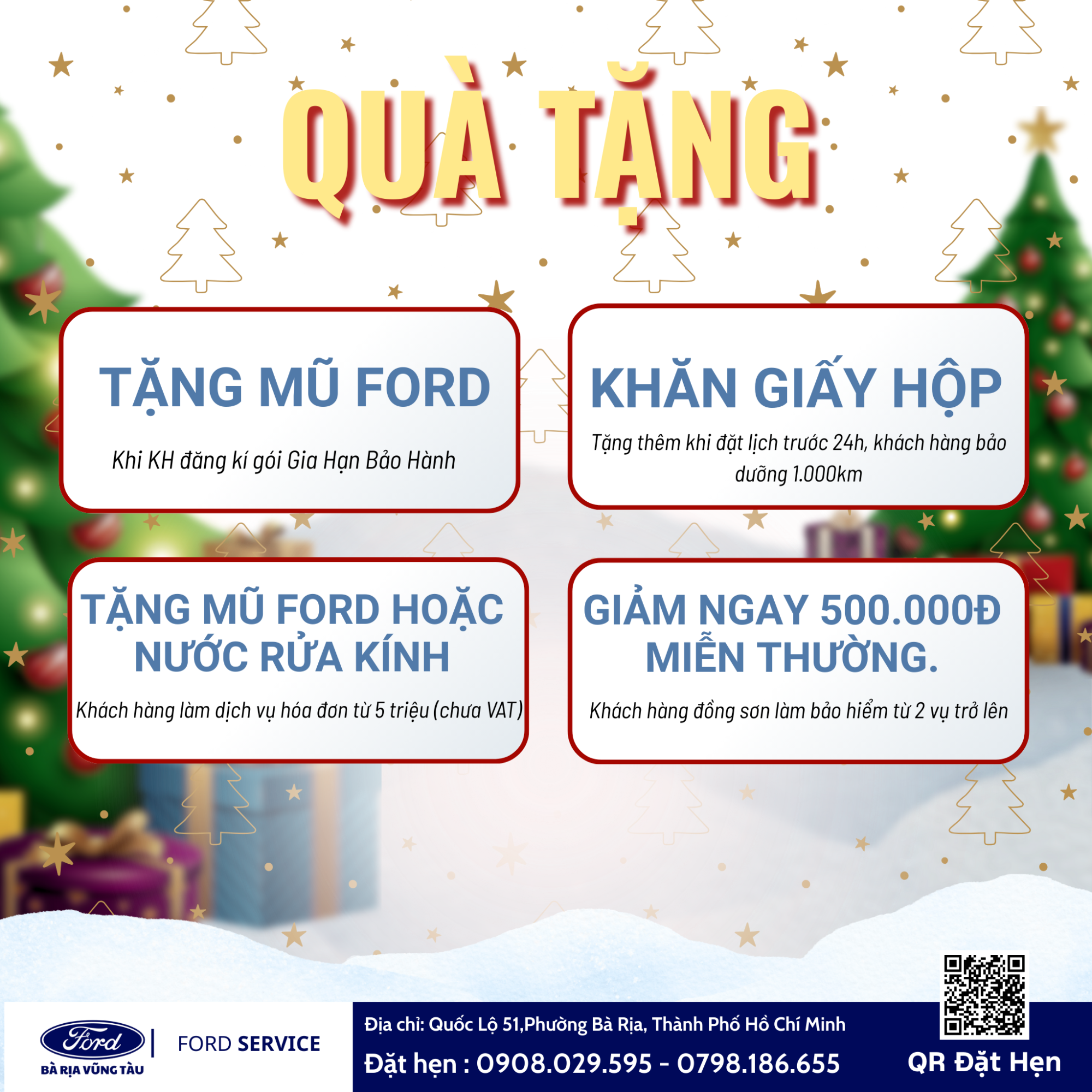 Hóa đơn dịch vụ từ 5.000.000đ (chưa VAT): tặng mũ Ford hoặc nước rửa kính.